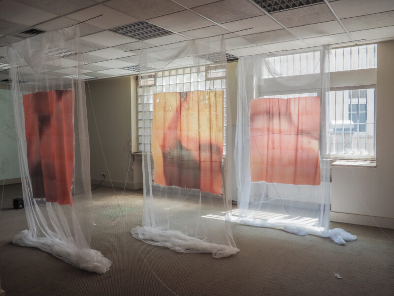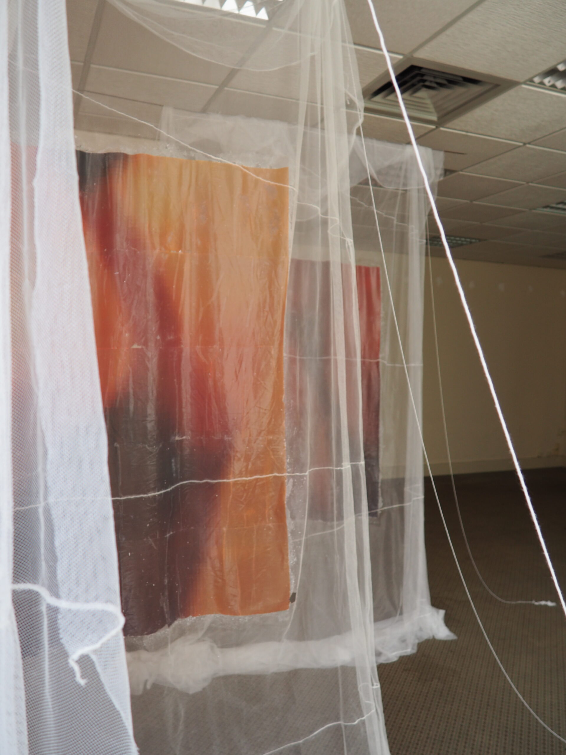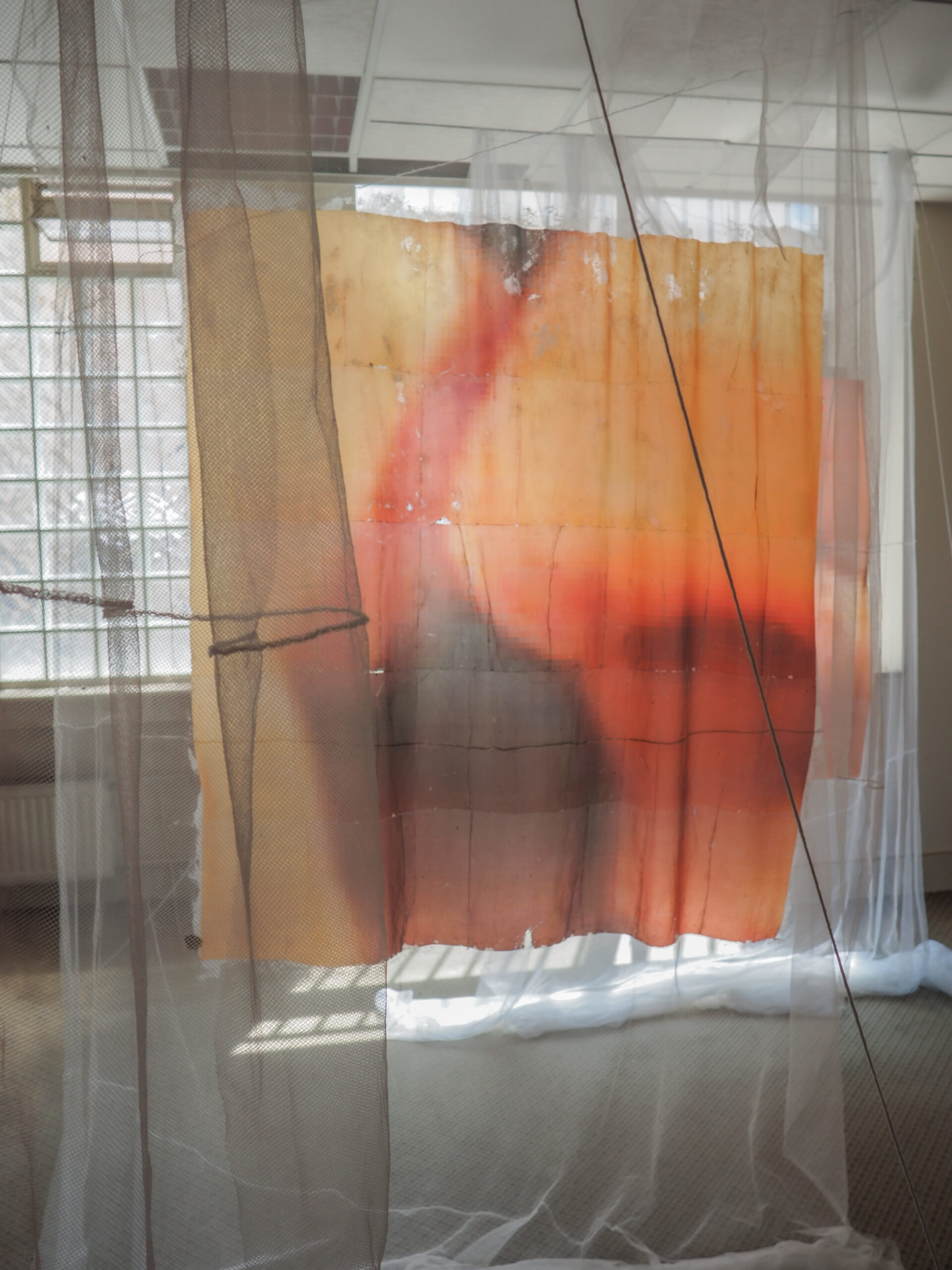 Metallstäbe, Polyesternetz, Papier, Lack, Garn